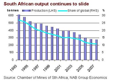 In the meantime, global gold production continues to decrease, despite higher prices. Underinvestment, as always, is blamed. Output fell 2.1% in the first three quarters, with South Africa, Australia and Indonesia producing less. Australia, and North and South America are expected to increase production in 2007, offsetting decreases elsewhere. South African production is still in decline, due to high costs and lower grades, but is likely to stabilise in coming years, says National.