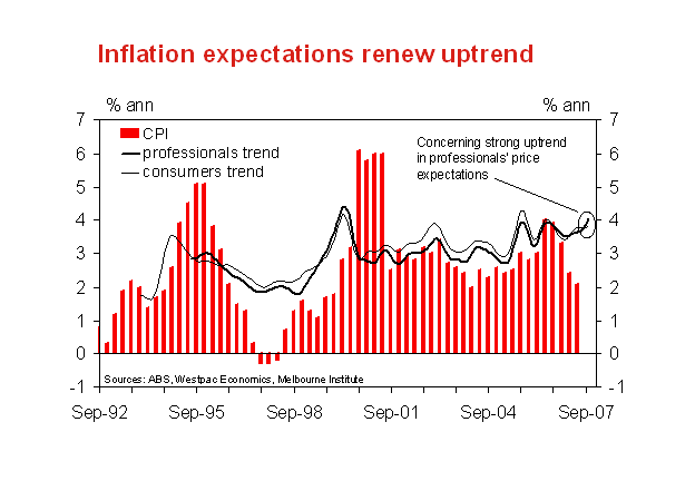 Westpac and the Melbourne Institute report Australian inflation expectations have surged to a two-year high in October, while the trend in labour market opinions remains consistent with a strong jobs growth outlook.