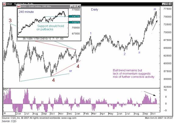 According to the chartists this level is now a pivotal point for the gold price shorter-term, as a close below here would suggest a deeper pullback in the price, particularly as momentum in the market is declining.