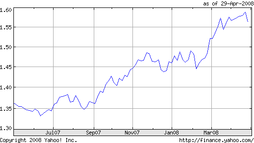 Since the US Federal Reserve “bailed out” Bear Sterns in March there has been a growing optimism that a trough in global financial sector weakness has now been seen. This, the market believed, would allow the Fed to redirect its focus on the two side- effects arising from massive monetary easing and liquidity injections – the tumbling US dollar and subsequent soaring commodity price inflation. Leading up to the April rate decision the US dollar had stabilised and grown stronger. The market had decided it was time to reverse speculative positions in commodities and return to stock investment. With only a 25 point cut and a majority belief the Fed was now on hold, the US dollar has risen further.