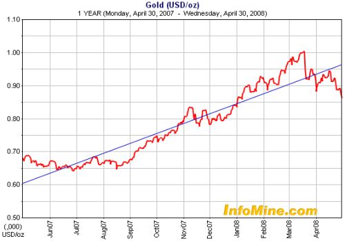 Since the US Federal Reserve “bailed out” Bear Sterns in March there has been a growing optimism that a trough in global financial sector weakness has now been seen. This, the market believed, would allow the Fed to redirect its focus on the two side- effects arising from massive monetary easing and liquidity injections – the tumbling US dollar and subsequent soaring commodity price inflation. Leading up to the April rate decision the US dollar had stabilised and grown stronger. The market had decided it was time to reverse speculative positions in commodities and return to stock investment. With only a 25 point cut and a majority belief the Fed was now on hold, the US dollar has risen further.