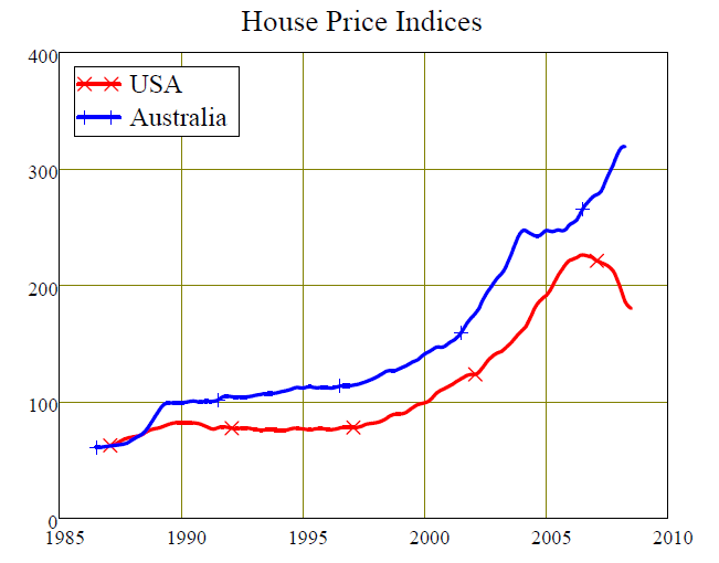 In short, I agree with Saul Eslake that housing prices in Australia will not rise but I disagree that house prices cannot fall. I can only look back to that graph.