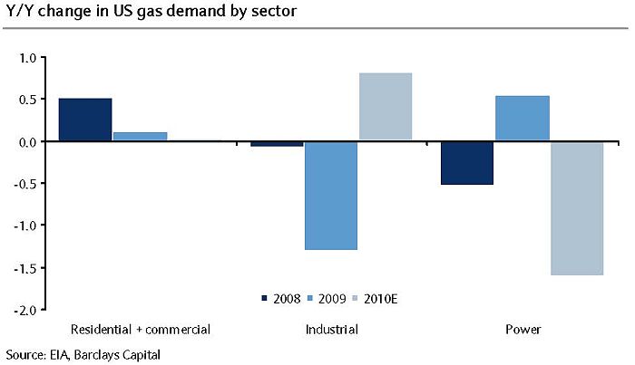 Finally, US demand is expected to fall for a second straight year in 2010. As far as the demand side goes, it has all to do with US utilities which are no longer replacing coal with gas as aggressively as they did in 2009.
