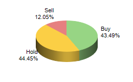 Net Ratings Breakdown: Buy 43.49%; Hold 44.45%; Sell 12.05%