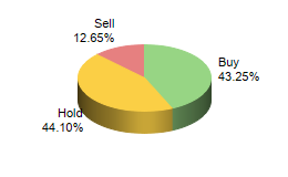 Net Ratings Breakdown: Buy 43.25%; Hold 44.10%; Sell 12.65%