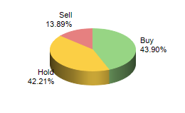 Net Ratings Breakdown: Buy 43.90%; Hold 42.21%; Sell 13.89%