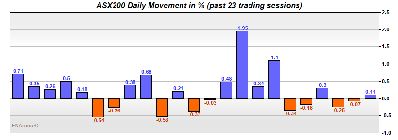 The ASX200 shot up 30 points in the first hour yesterday before fading all the way to the close. Wall Street had provided a mildly positive lead but it was a big day for earnings results.