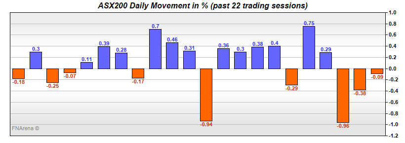 Individual stocks moves on the day were inconsequential. There were no standout losers in the ASX200 and winners all posted small moves. Most of the action involved the indices themselves.