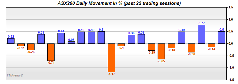 The local market did not need to wait for that indicator. In fact, traders could have left the building at 11am for an extended weekend, given by that time the ASX200 was up around 50 points and there it stayed for the rest of the session.