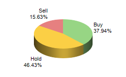 Net Ratings Breakdown: Buy 37.94%; Hold 46.43%; Sell 15.63%