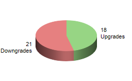 Several profit results reporters are represented on both sides of the ledger. AGL Energy received two upgrades, as did Oil Search, and Synlait Milk. Carsales received three downgrades. Challenger was downgraded twice.
