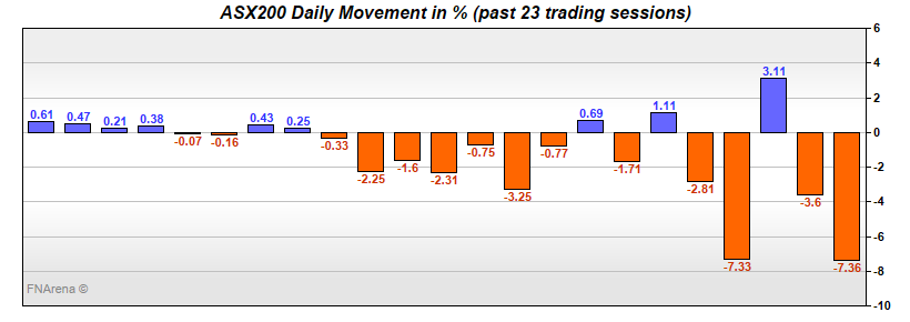 If the SPI futures were down -273 points yesterday morning because Wall Street fell over -7% on Monday night, this seemed to be a case of double-counting given the ASX200 fell over -7% on Monday. We got there first, and aside from a growing case-count, nothing new had happened. All agreed the 24 hours to yesterday morning was a matter of stretching the rubber band too far.