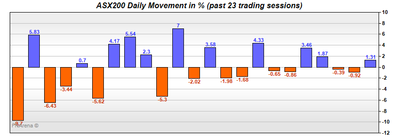 The ASX200 rallied 45 points from the open yesterday in the first fifteen minutes, in line with the overnight futures close after a positive session on Wall Street. An hour later, the index was down -72. A choppy afternoon took us to down -21 at the close. Seemingly a quiet day.