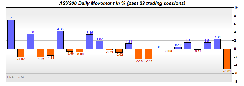I could rattle off a long list of remarkable stock moves but I can pick just two to tell the tale. Building materials company Wagners ((WGN)), which had fallen -78% from January, rose 26.7% yesterday. Home delivered meal service Marley Spoon ((MMM)), which had risen 420% since mid-March, fell -14.6%.