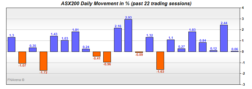 Note that the ASX200 put in a five-day winning streak last week and gained 4.2%, having gained 4.7% the week before.