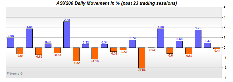 After yesterday’s big rally, the SPI Overnight closed down -3 points this morning.