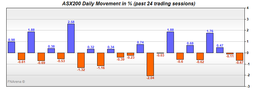 That was one factor turning a 76 point gain for the ASX200 by midday yesterday into only a 28 point gain on the close.