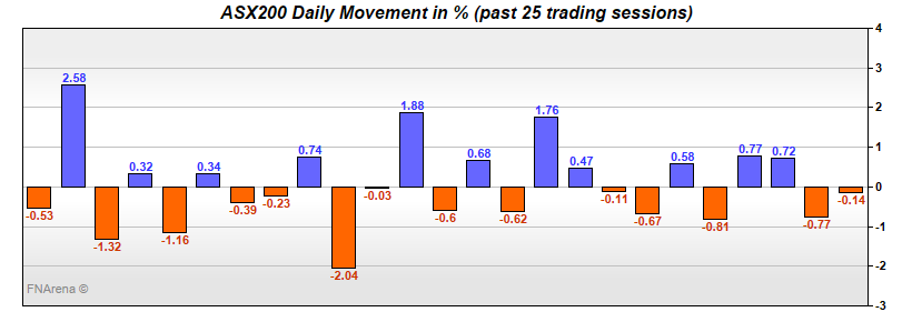In another session dominated by earnings results, the ASX200 netted out a 44 points gain amidst some huge individual stock moves both to the upside and the downside, again underscoring just what little certainty analysts (and the companies themselves) had during the June quarter. If you wanted to get on the top five index winners or losers boards, you had to post a very big move.