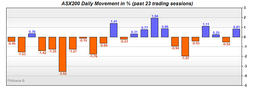 The local market did very little yesterday on low school holiday volume up to the RBA announcement at 2.30pm, at which point the ASX200 was up 7 points. I suggested yesterday the decision offered a binary risk with limited downside, and when a 50 points hike was confirmed the index shot up 45 points – in stark contrast to the reaction to the June hike.