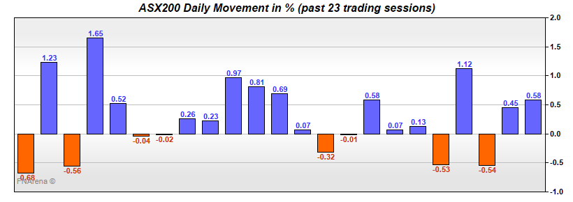 | S&P ASX 200 | 7032.50 | – 38.50 | – 0.54% |