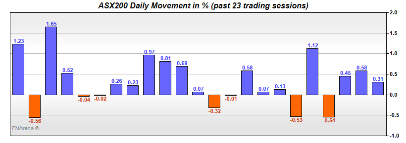 | S&P ASX 200 | 7064.30 | + 31.80 | 0.45% |