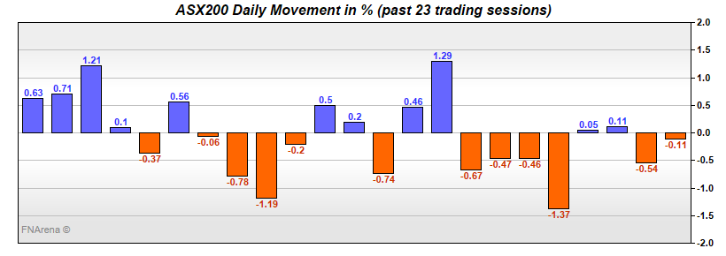 | S&P ASX 200 (ex-div) | 7076.50 | 0.11% | -3.13% | -1.76% | 0.54% |