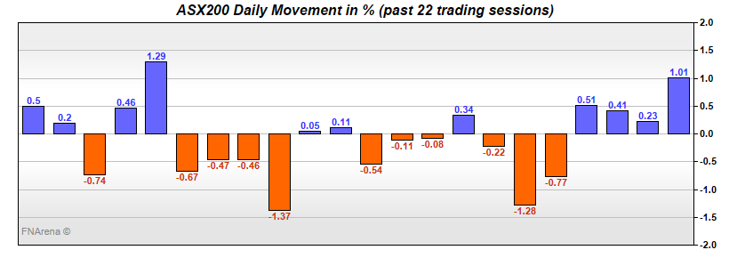 All overnight and intraday prices, average prices, currency conversions and charts for stock indices, currencies, commodities, bonds, VIX and more available on the FNArena website. Click here. (Subscribers can access prices on the website.)