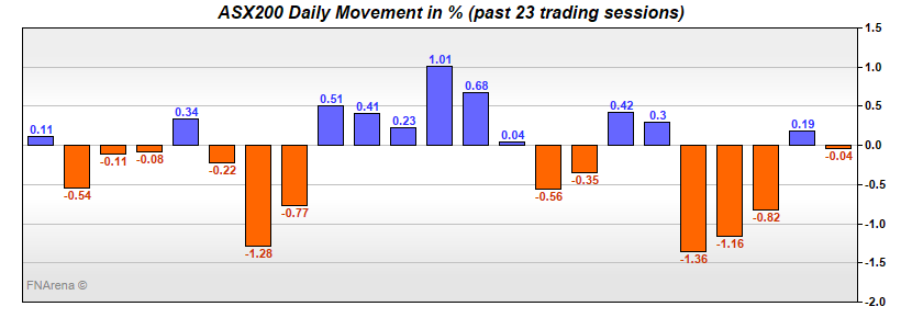The bad news is the ASX200 fell another -56 points yesterday to mark a fourth day of selling. The good news is it all happened in about the first twenty minutes. Thereafter, the index went nowhere. Not up, but not further down either.