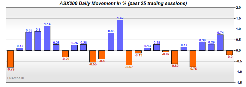 In the former case, Harvey Norman ((HVN)) rose 4.2% on its AGM and Temple & Webster ((TPW)) 14.4% on its AGM although that stock is not in the index.