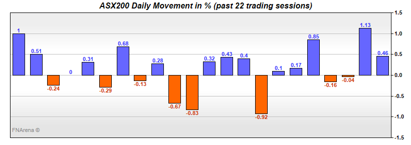 FNArena is not responsible for any glitches, omissions or data errors. This feature is not investment advice. It is offering a quick status on raw price movements for information purposes only.