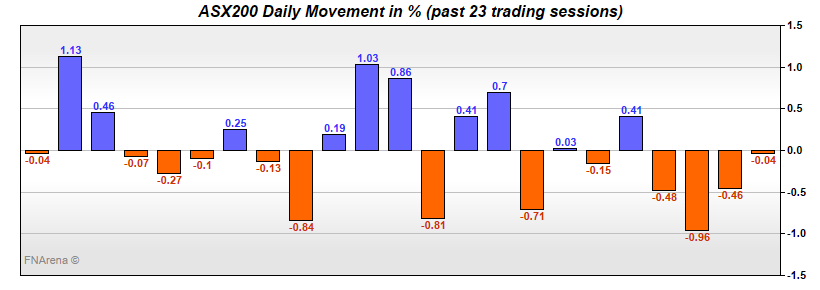 FNArena is not responsible for any glitches, omissions or data errors. This feature is not investment advice. It is offering a quick status on raw price movements for information purposes only.