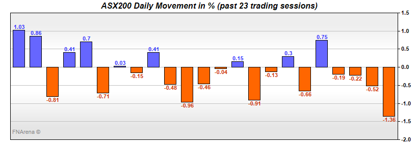 FNArena is not responsible for any glitches, omissions or data errors. This feature is not investment advice. It is offering a quick status on raw price movements for information purposes only.