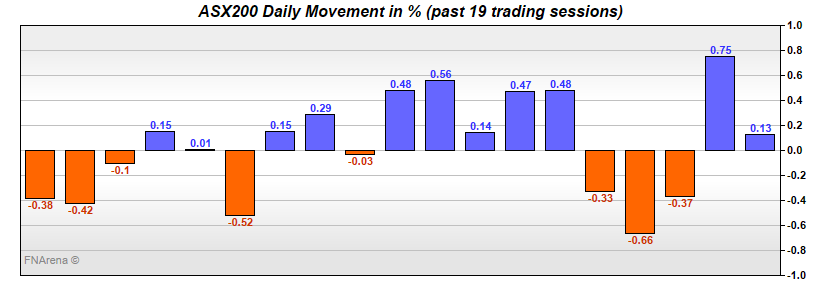FNArena is not responsible for any glitches, omissions or data errors. This feature is not investment advice. It is offering a quick status on raw price movements for information purposes only.