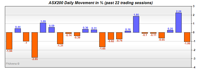 FNArena is not responsible for any glitches, omissions or data errors. This feature is not investment advice. It is offering a quick status on raw price movements for information purposes only.