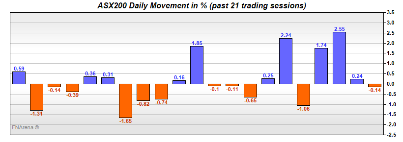 FNArena is not responsible for any glitches, omissions or data errors. This feature is not investment advice. It is offering a quick status on raw price movements for information purposes only.