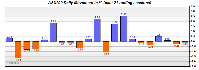 FNArena is not responsible for any glitches, omissions or data errors. This feature is not investment advice. It is offering a quick status on raw price movements for information purposes only.