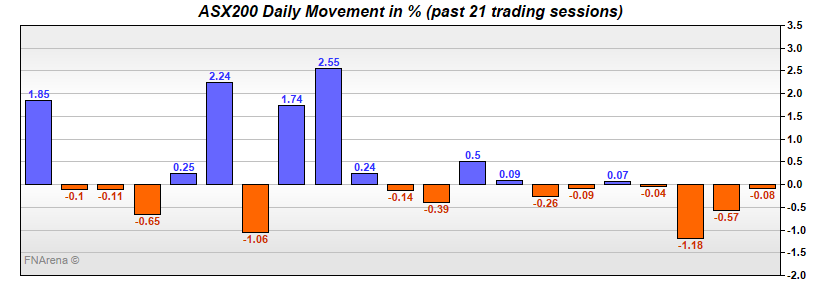 FNArena is not responsible for any glitches, omissions or data errors. This feature is not investment advice. It is offering a quick status on raw price movements for information purposes only.